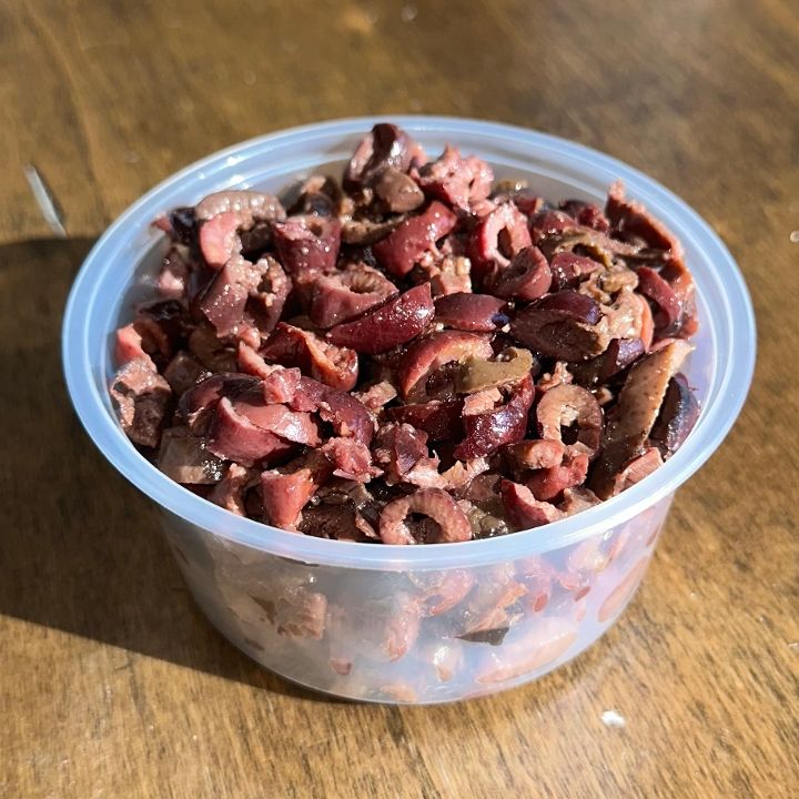Delicious, briny Kalamata olives—perfectly cured for a bold, Mediterranean flavor. Ideal for salads, tapenade, or as a tasty snack!