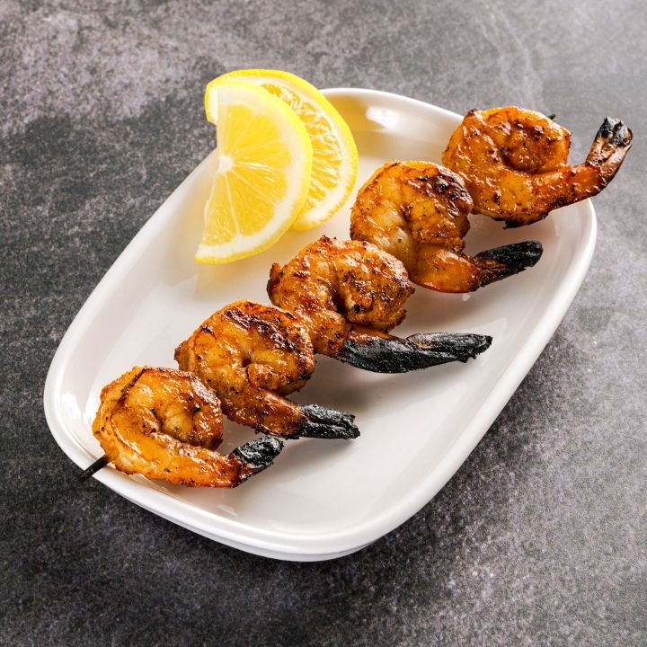 Skewered flame-grilled jumbo shrimp seasoned with house spices.