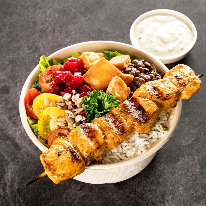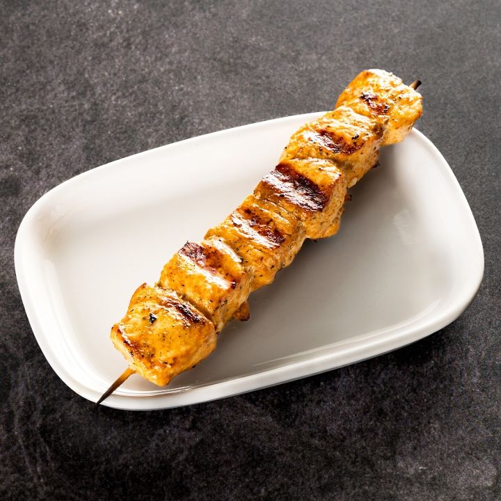 Skewered Flame Grilled Chicken Breast marinated in-house spices and yogurt.